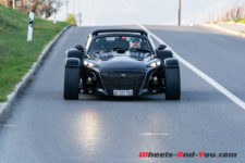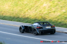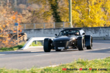 J’avale quelques virages et l’auto se comporte à merveille, elle aime ça et elle en redemande. Le sinueux c’est son terrain de jeu favori, mais je reste modeste. N’étant pas pilote et de surcroît sur route ouverte, la sagesse est de mise. Je remarque également qu’en adoptant une allure plus cool, notre Donkervoort se conduit avec facilité. L’embrayage n’est pas trop dur et la direction, ferme et précise, se gère assez bien en roulant.