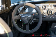 L’habitacle est plutôt restreint et, pour s’installer à bord, il faut littéralement se laisser glisser dans la voiture. C’est une question d’habitude et il y a deux trois choses à assimiler pour rentrer et sortir, mais avec un peu d’entraînement, ce n’est plus un souci. La position de conduite est quasiment celle d’une monoplace, avec les jambes à l’horizontale. Une fois installé, on a le sentiment d’être au volant d’une voiture de course et c’est d’ailleurs un peu le cas, j’y reviens dans un moment.