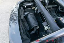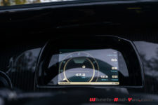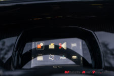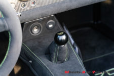 Devant mes yeux, le tableau de bord en carbone regroupe les différentes commandes, avec notamment un écran en lieu et place des compteurs. Plein de petits interrupteurs et boutons pour gérer l’essentiel, il n’y a d’ailleurs que ça et c’est très bien ainsi. Pas de système de navigation, pas de radio, pas de Bluetooth, cette Donkervoort mise tout sur le plaisir de conduite ultime, c’est à dire la communion entre le pilote et l’auto. On retrouve quand même en option sur notre voiture, une climatisation et une caméra de recul.