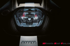 La SF90 Stradale est donc la première Ferrari disposant d’une motorisation hybride rechargeable. L’ensemble se compose d’un V8 turbo de 780 ch et de trois moteurs électriques totalisant 162 kW (220 ch), soit pas moins de 1’000 ch et 800 Nm ! Deux moteurs électriques sont indépendants et situés sur l’essieu avant alors que le troisième est placé à l’arrière, entre le moteur thermique et la transmission. Cette dernière, totalement revue pour améliorer encore son efficacité, est à double embrayage et 8 rapports. La SF90 Stradale est donc la Ferrari de série la plus puissante jamais produite. Et pour la première fois de l’histoire du constructeur, c’est un V8 qui trône au sommet de la gamme.