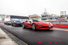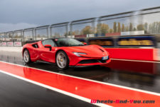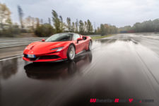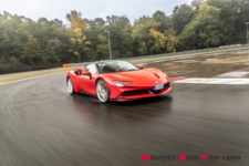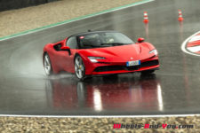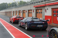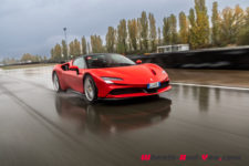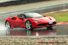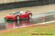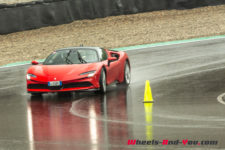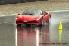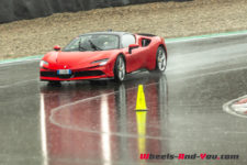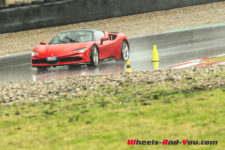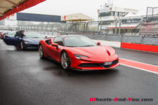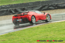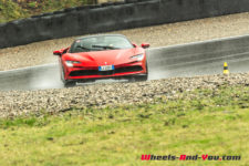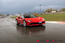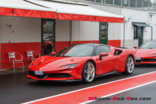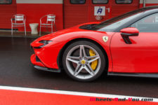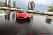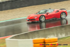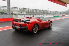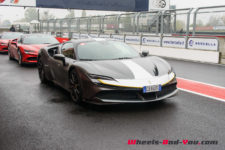 Au final, je n’ai malheureusement pas pu découvrir tout le potentiel de cette SF90 Stradale mais même sur piste sèche, je ne suis pas sûr qu’une demi-journée à son volant permette d’assimiler autant de puissance pour le pilote novice que je suis. Mais c’est quand même intéressant de rouler dans de telles conditions car je perçois à quel point la voiture est aboutie, qu’avec son système à 4 roues motrices e-4WD permanent, elle est parfaitement utilisable même quand le temps n’est pas au beau, cela même si un second jeu de pneus avec un peu plus de profil que ceux des Pilot Sport Cup2 serait opportun.