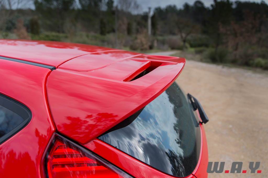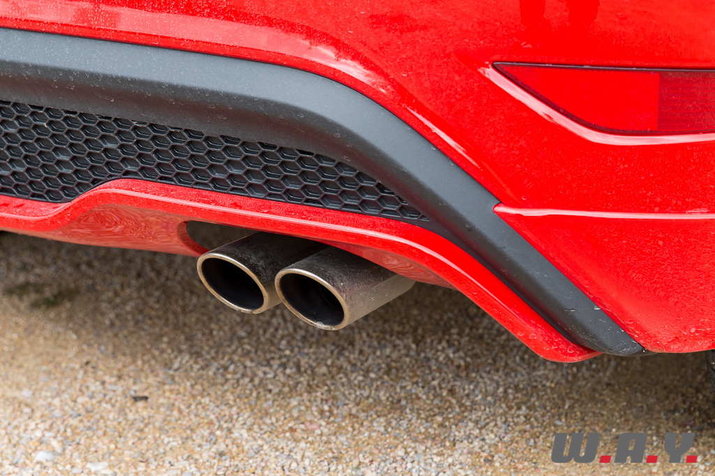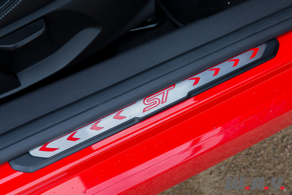 La suspension ferme prend ici tout son sens avec une absence totale de roulis, l’eTVC guide avec célérité l’auto vers la corde et le train arrière suit comme placé sur des rails. Quel plaisir ! Au sujet de la direction, même si la démultiplication a été rendue plus directe sur la ST, elle demeure à mon sens bien trop avare en remontées d’informations et trop légère même en conduite rapide. Quasi impossible de détecter ce qui se passe sous les roues avant et le léger décalage entre l’impulsion donnée sur la couronne et le braquage effectif des roues perturbe et nécessite un certain temps d’adaptation. Dommage, car la motricité est très bien gérée, de même que le grip qu’il est difficile de prendre en défaut. Ce n’est qu’une fois les béquilles électroniques en mode sport ou totalement désactivées que le train arrière, après provocation, se montre joueur sans pour autant devenir traître.