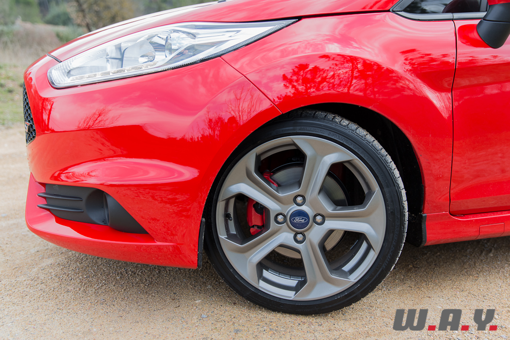 Les freins ? Endurants, j’ai toutefois constaté que la pédale ramollissait en usage très intensif. La puissance de freinage par contre n’a jamais fait défaut et permet de conserver des cadences élevées. A noter que contrairement au reste de la gamme Fiesta, la ST est équipée de quatre disques.