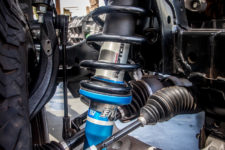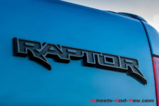 Techniquement, tout est spécifique au Raptor : le châssis est élargi à l’avant, renforcé en plusieurs endroits et comporte des attaches spécifiques pour les suspensions. Alors que le Ranger dispose de ressort à lames, le Raptor adopte un pont arrière renforcé guidé par 4 bras tirés et une barre de Watt pour un parfait guidage latéral. Les magnifiques combinés ressort-amortisseur développés par Fox disposent de bi-pass autorisant des règles d’amortissement différentes selon la vitesse et l’amplitude des irrégularités. Il en est de même à l’avant où les trains sont guidés par deux triangles superposés en aluminium. La crémaillère de direction est disposée de manière optimale pour éviter les angles induits par les grands débattements, plus de 30% supérieurs à ceux d’un Ranger Trailhawk.