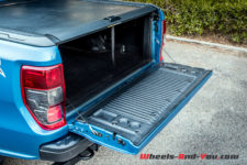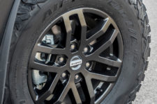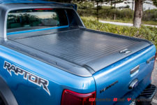 A l’arrière, un couvre-tonneaux rétractable est inclus en série. Alors que le Ranger Trailhawk est livré avec des jantes de 18 pouces, le Raptor lui préfère des jantes de 17 pouces permettant le montage de pneus BF Goodrich 285/70 R 17 au flanc plus haut, mieux adaptés à l’utilisation tout-terrain.