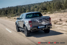 Côté mécanique, le Ranger Raptor n’est disponible qu’avec un moteur diesel 2.0 l biturbo qui, s’il peut paraître curieux pour un véhicule sportif, s’avère fort approprié grâce à des caractéristiques étonnantes. Il développe 213 ch mais surtout un couple impressionnant de 500 Nm ! Les deux turbos de tailles différentes gomment pratiquement tout temps de réponse. Quant à la transmission automatique à 10 rapports, elle est capable de sauter jusqu’à 3 rapports autant en montant qu’en descendant. Le différentiel arrière peut être verrouillé manuellement.