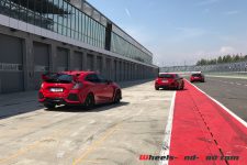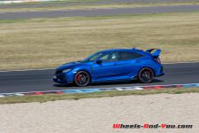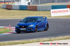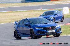Si nous avons fait le voyage jusqu’en ex-Allemagne de l’Est, c’est un peu pour la Autobahn, mais surtout pour la piste de 4.5 km de l’Euro-Speedway Lausitzring. Ce triangle aux virages relevés comporte un tracé variant grandes courbes et petits virages avec de belles phases d’accélération les reliant. Le temps de roulage est assez limité avec, malheureusement pour moi, un échange de position imposé pile avant de rouler fort. Relégué derrière un confrère, je ne peux donc pas pousser la Type R bien loin.