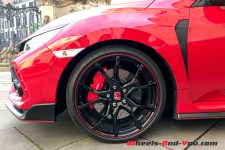 Pour le châssis, la suspension pilotée est reconduite avec un nouveau mode confort. En plus des réglages durs et très durs, le mode confort assouplit considérablement les amortisseurs pour rendre la dixième Type R plus docile et plus vivable au quotidien. Les trains roulants ont été largement revus, autant à l’avant qu’à l’arrière. Pour soulager la direction, un système à deux axes au lieu d’un seul maintient la roue avec un bras de levier plus court, ce qui limite l’effet de couple. Une suspension multi-bras est installée à l’arrière, améliorant la tenue de route et le confort par rapport à la version précédente. Enfin, le freinage est confié à des disques largement dimensionnés, pincés par des étriers Brembo bien visible au centre des jantes 20 pouces.