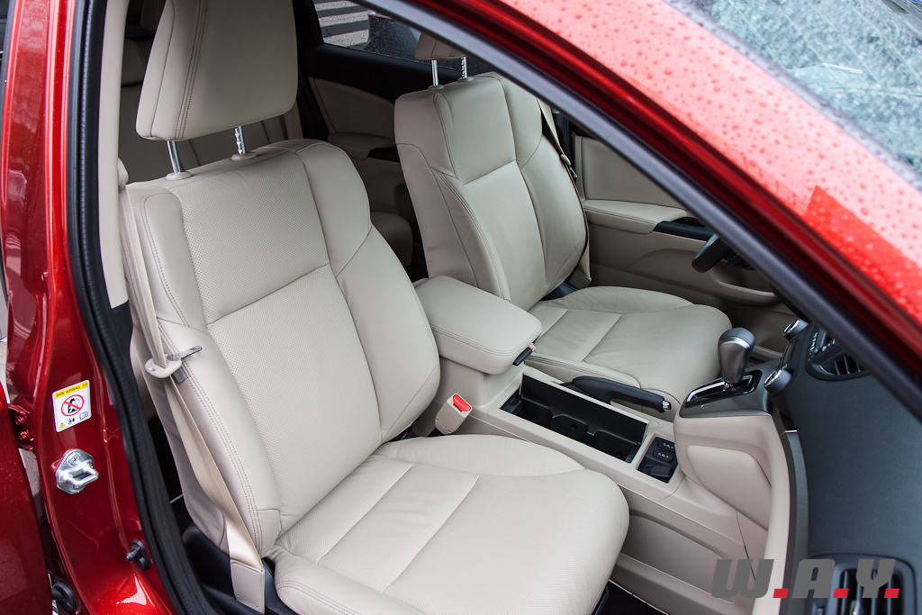 La qualité des matériaux est également en net progrès bien que toujours en retrait sur certains points comparativement à la concurrence. Habitudes nippones. L’ensemble respire la qualité et semble à l’épreuve du temps même si certains choix de coloris confèrent à l’intérieur une tristesse regrettable. Côté équipements, Honda nous met les petits plats dans les grands, suivant le niveau de finition, avec un GPS à disque dur, une caméra de recul, le démarrage sans clé et toute une batterie d’assistances actives à la conduite.