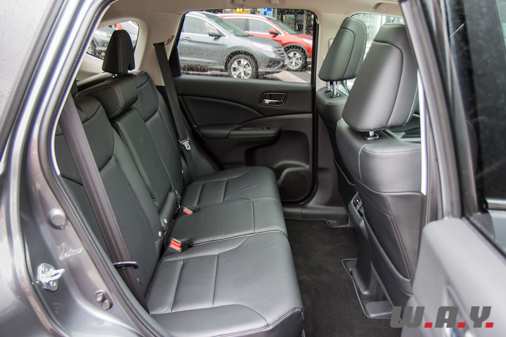 En termes d’encombrement, le CR-V nouvelle génération demeure quasi pile-poil, à 1,5 mm près (en moins !), dans les mêmes cotes que la version précédente ; soit 4’571 mm de longueur, 2’095 mm de largeur et 1’685 mm de hauteur. Ceci dit, l’habitabilité a été totalement revue, offrant un espace accru aux passagers dont un véritable boulevard au niveau des genoux pour les passagers arrière et une garde au toit augmentée. Le coffre dispose d’une capacité de 589 à 1’669 litres, banquette rabattue. A noter que cette dernière abandonne son système coulissant pour une évolution des « Magic Seats » découverts lors de notre essai de la Honda Jazz. Deux poignées à tirer et les assises et dossiers se rabattent d’eux-mêmes. Astucieux !
