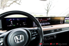 Pourquoi un tel clivage ? Parce que Honda a mis le paquet sur une série d’écrans qui décorent littéralement tout le tableau de bord de gauche à droite. Personnellement, j’aime moyennement car le problème n’est pas tellement d’avoir tous ces écrans, mais bien leur disposition ainsi que leur style. En fait, aux extrémités il y a deux écrans pour refléter les rétroviseurs extérieurs et au centre, trois écrans, dont un derrière le volant, avec les informations principales à l’attention du conducteur.