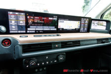 Autre particularité, les rétroviseurs latéraux se retrouvent sur des écrans aux extrémités du tableau de bord et le rétroviseur central peut projeter une image de la caméra arrière ou, en basculant, refléter l’arrière comme un miroir classique. A la fin de mon essai, je ressens une légère migraine car mon oreille interne a eu des difficultés à se calquer sur ce qu’elle ressentait vis-à-vis de ce que mes yeux voyaient. Encore une fois, il faudra un peu s’habituer je pense.