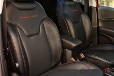 S’il est un point où Jeep à vraiment progressé ces dernières années, c’est dans la qualité perçue de ses intérieurs. Plus rien à voir avec la gamme de Wrangler et ce Compass le démontre : en m’asseyant à son volant, j’ai l’impression de me trouver dans une européenne. La qualité des matériaux et des assemblages est de bon niveau, avec des plastiques moussés autant sur la planche de bord que sur les portières. Le tableau de bord présente deux grands compteurs analogiques séparés par un affichage digital tandis que la console centrale regroupe un bel écran très réactif de 4.5 pouces et les commandes de climatisation.