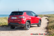 Sur un parcours off-road sélectionné pour l’occasion, je vérifie que le Compass n’usurpe pas sa filiation à la marque off-road américaine de référence. En effet, il est capable de monter une pente de 100% (45º) et de franchir un dévers de 50º ! Les vitesses courtes et le différentiel inter-ponts verrouillable permettent au Compass de poursuivre sa progression même avec deux roues en l’air, l’électronique reportant le couple sur les roues en contact avec le sol. Il franchit ainsi des zones ou l’ont ne s’attend pas à trouver un SUV, là où ses concurrents ne s’aventurent même pas.