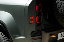 La grille de calandre est plus grande, pour accueillir notamment des nouveaux radiateurs, la protection de bas de caisse à l’avant est plus proéminente avec un crochet de remorquage mis en évidence mais surtout, les ailes sont largement plus musclées. A l’arrière, le bas du pare-chocs est redessiné pour intégrer une quadruple sortie d’échappement ; ce dernier trait esthétique ne me plaît pas vraiment, je le trouve un peu trop tuning et je préfère les canules plus conventionnelles du Defender V8.
