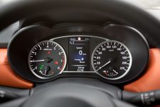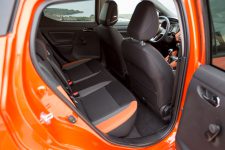 L’intérieur de l’habitacle est esthétiquement soigné avec, à choix, trois différents packs de couleurs. Les inserts en cuir couplés aux éléments à l’aspect métal satinés sont beaux et agréables au toucher, malheureusement ils sont entourés de panneaux en plastique dur beaucoup plus austères qui ternissent la moyenne de la qualité perçue. Même les panneaux de porte arrière sont une seule pièce en plastique qui ne comporte aucun rangement, en plus de cacher un système de vitre manuelle. Bien que l’on puisse ne jamais se servir de ces places, l’économie consentie saute aux yeux.