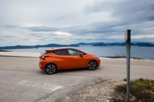 La session d’essai commence à bord d’une Micra orange et son moteur essence de 898 cm3. L’agrément promis aux conducteurs même grands est au rendez-vous mais empiète sur l’espace aux jambes des passagers arrière. Une pression sur le bouton de démarrage anime le petit 3 cylindres que l’on perçoit légèrement à l’oreille. En saisissant le levier de vitesses, je suis troublé par son aspect et sa texture. Ni imitation cuir, ni plastique dur, c’est un genre de revêtement moussé qu’on ne s’attend pas à trouver là.