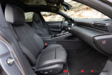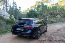 Marché Suisse oblige, je débute mes essais avec celui qui selon moi remportera les suffrages chez nous, le moteur essence le plus puissant, en finition GT. Pour ce faire, Peugeot nous a concocté un parcours qui emprunte une spéciale du Rallye du Portugal, ça promet d’être sympa. Ayant déjà essayé plusieurs voitures de la marque au Lion, notamment la 308 GTi et le 3008 GT qui m’avaient beaucoup plu, je me retrouve en terrain connu face au i-Cockpit. Rapidement, je constate également le confort exemplaire des assises, digne d’un salon. Avant d’attaquer les virages, une portion d’autoroute confirme ce que j’avais ressenti sur le DS 7 Crossback : ce 1.6 est volontaire mais lorsqu’on le sollicite franchement, le moulin donne l’impression d’agoniser, faute à sa petite cylindrée. J’entame la partie sinueuse et c’est avec plaisir que je retrouve l’excellent toucher de route Peugeot, quel régal. Néanmoins, et c’est le même constat quel que soit le moteur, cet agrément est quelque peu entaché par une direction qui manque de ressenti, c’est dommage.