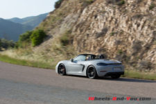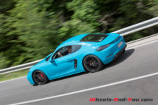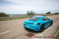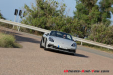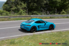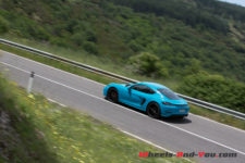 La direction est légère avec juste ce qu’il faut de fermeté pour ressentir la route en tenant le volant. La 718 réagit très vite et pivote sur un axe placé entre le conducteur et le passager. De plus, le centre de gravité semble idéalement placé, ce qui confère à l’auto un comportement très joueur et sûr à la fois. En tartinant généreusement en sortie de courbe, l’arrière se déteste volontiers, vite contré par l’ESC ou festival de travers si l’on s’affranchit des aides électroniques.