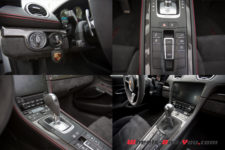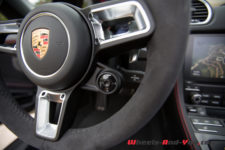 Les voitures à disposition ont subi un traitement de fond à base de fibre de carbone du plus bel effet partout dans l’habitacle. Le tableau de bord et la console centrale sont bien mises en valeur et intègrent moins de boutons que par le passé. Pas mal de fonctionnalités passent par l’écran tactile, mais l’essentiel reste en accès direct. Une touche commute la suspension PASM en sport et une autre porte un petit dessin d’échappement, très évocateur.