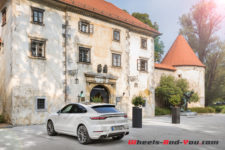 Je ne tarde pas à switcher en mode Sport+, le sélecteur de boite en manuel et je fonce comme un missile sur les départementales slovènes. Avec l’appui du système de freins PCCB (Porsche Ceramic Composite Brake) de notre auto, mais aussi des roues arrière directrices, je n’ai vraiment plus le sentiment de conduire un SUV. Franchement, c’est tout simplement bluffant à quel point on peut attaquer et maintenir une conduite ultra sportive avec ce Cayenne Coupé, de surcroit sur une chaussée vraiment pas parfaite.