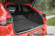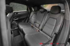 Pour compenser la garde au toit réduite à l’arrière, les ingénieurs Porsche ont abaissé l’assise de la banquette de 30mm. Ainsi, même vos passagers les plus grands ne seront pas péjorés en voyageant à bord de ce Cayenne Coupé. Logiquement le volume du coffre perd un peu en capacité avec un espace allant de 625 à 1’540 litres (600 à 1510 litres pour le modèle Turbo), alors qu’il varie entre 770 et 1’710 litres sur un Cayenne normal. Mais dans l’absolu, ce Cayenne Coupé vise une clientèle qui se contentera parfaitement de cela, donc il n’y a vraiment lieu de blâmer cette différence.