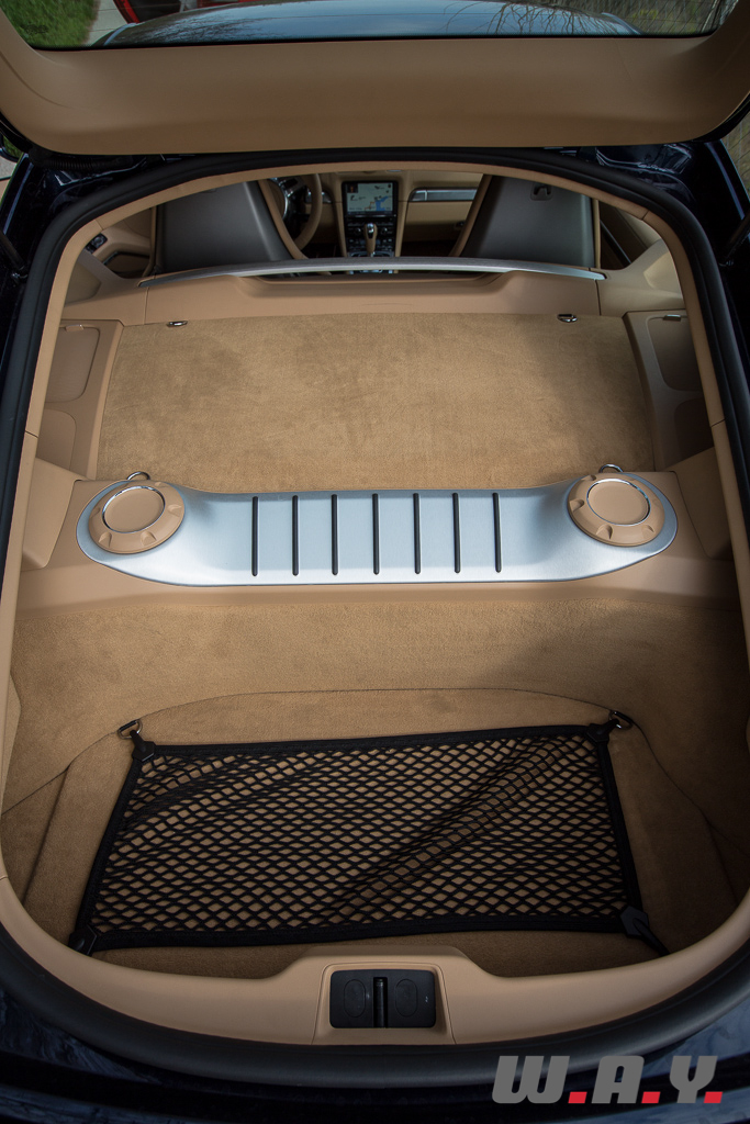 La première impression qui me vient à l’esprit après quelques kilomètres, c’est que ma monture me semble particulièrement sage et docile. La boîte est une merveille de douceur au changement de chaque rapport et les suspensions semblent filtrer tous les revêtements routiers. Ajoutez à ça la sonorisation Burmeister et je commence à me demander si Porsche a complètement perdu la raison. C’est alors que le parcours m’emmène sur des petites routes sinueuses et bien dégagées. A ce stade, je passe la boîte en manuel, raffermis les suspensions grâce au Porsche Active Suspension Management (PASM) et active le mode Sport histoire d’en avoir le cœur net.