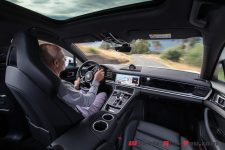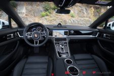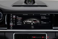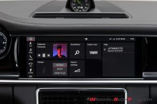 A l’intérieur, c’est une copie de la Panamera, donc pas trop de surprise, à l’exception de cette fameuse cinquième place disponible sur la banquette arrière. Bien entendu, il est possible d’avoir les sièges rabattus avec une architecture 40/20/40. En option, les futurs acquéreurs peuvent configurer deux places arrière uniquement et la console centrale offre vide-poche ainsi que les commandes pour régler la climatisation, les sièges, etc.