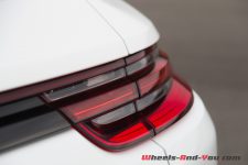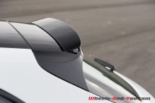 La différence la plus notable se situe sur le béquet du coffre avec un aileron encastré qui sort en fonction de la vitesse. Au maximum, ce dernier s’incline avec un angle de 26 degrés et permet, à la vitesse maximale, d’ajouter 50 kilos d’appui… probablement insignifiant pour une voiture de 2 tonnes.