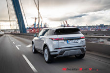 A l’occasion de ce lancement, nous avons roulé principalement avec la version P200. C’est d’ailleurs celui-ci qui est présenté dans notre fiche technique. Avec plus de 1.8 tonnes sur la balance, vous imaginez bien que ce n’est pas un foudre de guerre. Toutefois, pour celui ou celle qui mise avant tout sur la robe de l’Evoque, ça sera amplement suffisant. Sur les autoroutes allemandes on a pu régater confortablement à plus de 200 km/h, et même aller taper la vitesse maximum, 216 km/h alors que le compteur en affiche 225. Tout cela sans peine avec toujours un confort exemplaire. La consommation mixte pour cette déclinaison est annoncée à 7.8 l/100km, mais on ne manquera pas de détailler ce point, en fonction de la motorisation que nous aurons lors de notre essai complet.