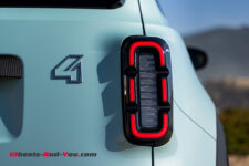 L’équipe de design a relevé un défi important car la nouvelle R4 devait hériter du style de la R4 originale. La version 2025 adopte ainsi une face avant monobloc bi-ton avec optiques intégrées ainsi qu’un liseré LED particulièrement réussi pour dessiner la calandre. Des bandes latérales, qui rappellent les bandes en plastics de la dernière R4, ornent les flancs et à l’arrière, les optiques sont regroupées dans un bloc rectangulaire vertical sur un grand hayon. Ce dernier détail est réellement un clin d’œil à l’ancienne génération.