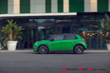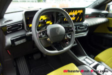Pour le lancement en Suisse, le moteur proposera 110 kW (150 ch) et sera associé à une grande batterie lithium-ion à chimie NMC (Nickel Manganèse Cobalt) de 52 kWh. Elle promet une autonomie jusqu’à 410 km WLTP. Pendant ma prise en main, sur des trajets mixtes parcourus à bonne vitesse, j’ai constaté une consommation de 13 kWh/100km. Les 400 kilomètres en ville paraissent ainsi envisageables. Sur autoroute à 120 km/h, on devrait pouvoir tabler sur environ 250 kilomètres. Nous aurons l’occasion de vérifier tout cela lors d’un prochain essai complet.