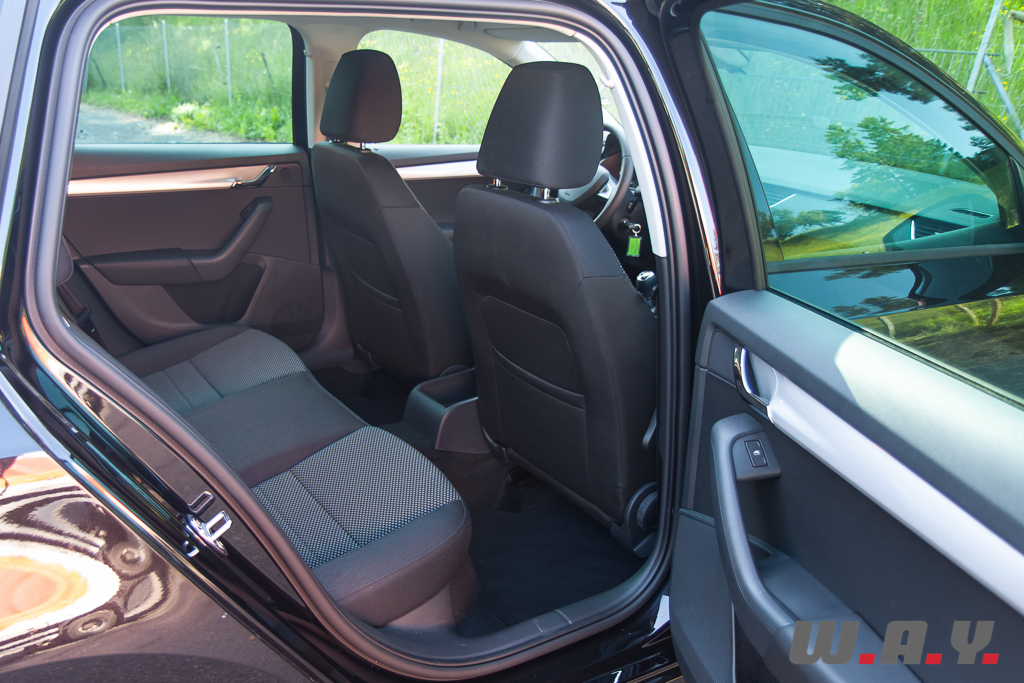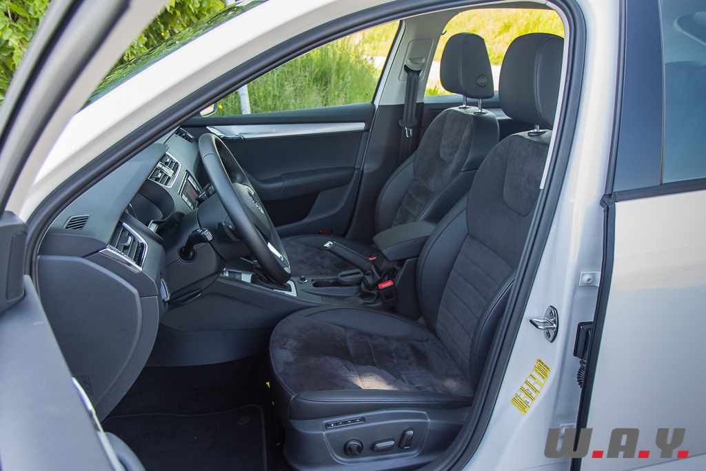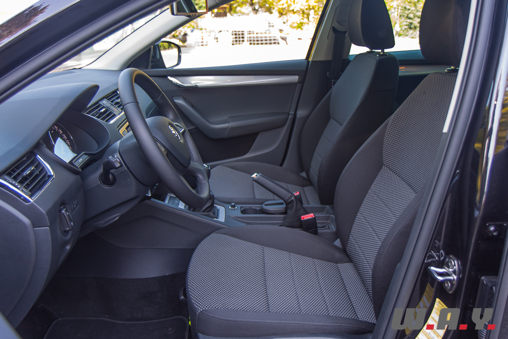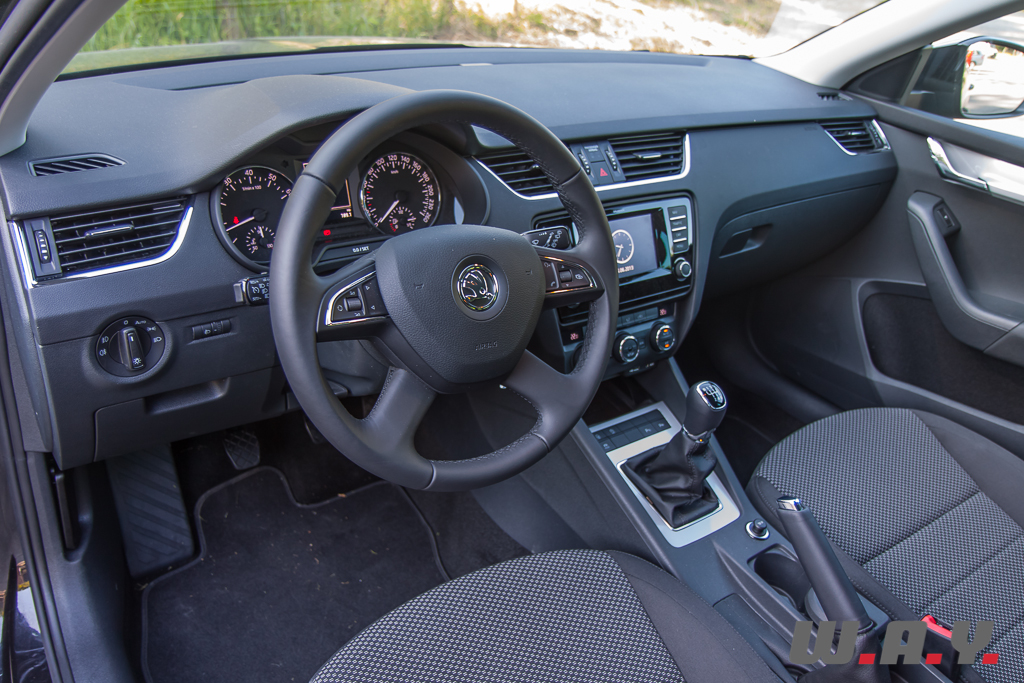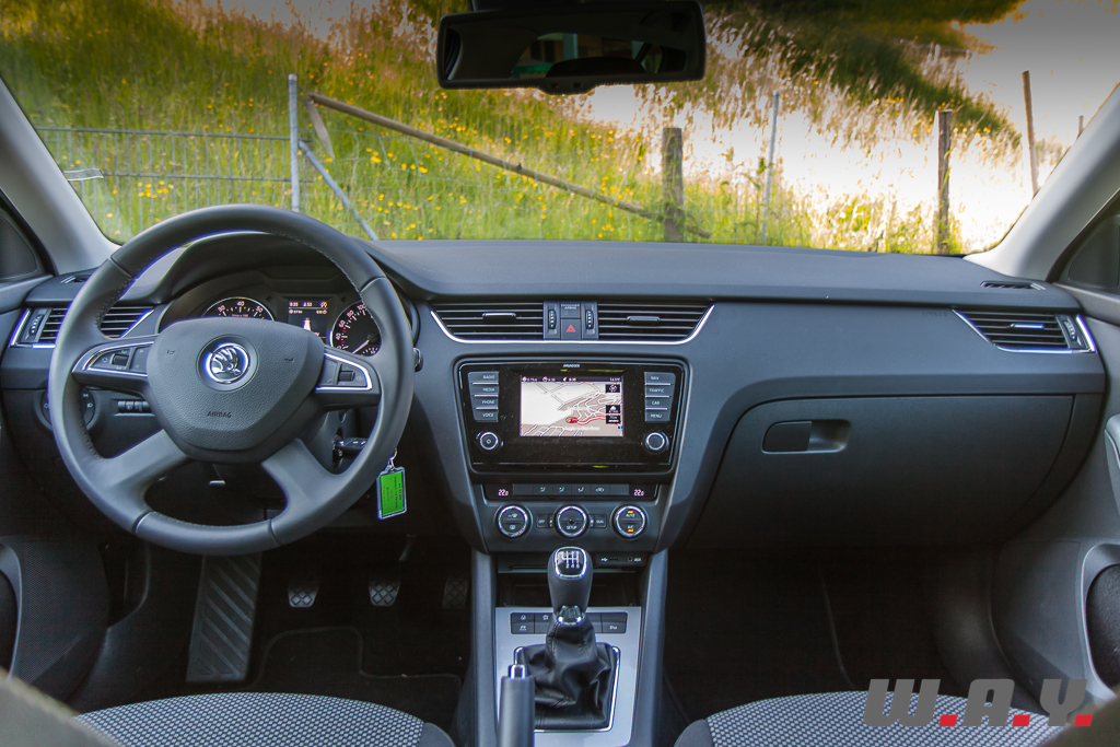 Niveau présentation, si cela reste relativement sobre, voir austère pour certains, j’ai trouvé que la qualité de finition était bien meilleure que sur la Skoda Rapid essayée récemment. C’est donc en toute logique aussi un peu mieux que l’Octavia précédente et surtout elle n’a rien à envier à ses cousines du groupe VW. Surtout que niveau équipement, c’est Versailles. Déjà bien fourni de base, il suffit d’opter pour la finition « Elegance », le haut de gamme, plus quelques options pour bénéficier de toutes les dernières technologies imaginables. Je noterai par exemple l’assistant au maintien de trajectoire (Lane Assist), la reconnaissance des panneaux de signalisation, un détecteur de fatigue (Driver Activity Assist), etc. Deux systèmes GPS sont au catalogue, le haut de gamme dispose d’un plus grand écran. Dans les deux cas, ils sont tactiles et leur utilisation est très intuitive avec un fonctionnement relativement rapide.