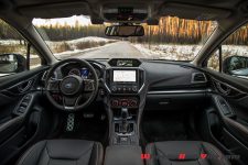 Globalement, et même s’il ne faut pas s’attendre à de la sportivité au comportement de la Subaru XV, je suis séduit par le mix entre des capacités dynamiques d’excellent niveau sur route, avec un comportement très sécurisant y compris sur les chaussées enneigées rencontrées durant mon essai, et des aptitudes étonnantes à sortir du goudron. La XV m’emmène sur des pistes forestières détrempées par la neige et donc très boueuses, là où bon nombre de concurrents ne sauraient s’aventurer et où seul le Jeep Compass Trailhawk pourrait éventuellement rivaliser. Tout cela est proposé dans un confort certes un peu ferme, mais excellent tant par l’amortissement réussi que le niveau sonore limité, comparable à celui d’un véhicule premium.