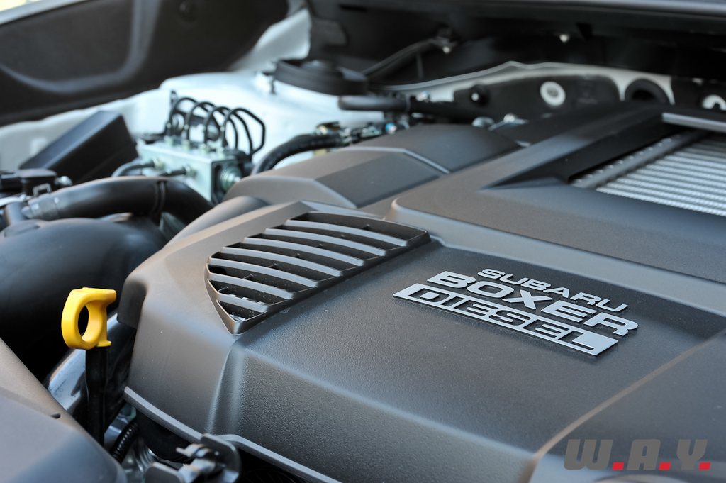 Fidèle à lui-même, Subaru a installé un moteur boxer dans cette XV. Trois motorisations quatre cylindres sont disponibles, deux essence et un diesel. Tout d’abord un petit 1.6 l. de 115 CV pour un couple de 150 Nm à 4’000 t/min, puis un 2.0 l. de 150 CV pour un couple de 196 Nm à 4’200 t/min. Dépendant de la transmission, manuelle ou automatique, les consommations en utilisation mixte varient entre 6.3 et 6.9 l./100km et les émissions de CO2 entre 146 et 160 g/km. Le diesel est aussi un 2.0 l. et il développe 147 CV pour un couple de 350 Nm disponible entre 1’600 et 2’400 t/min. La consommation moyenne est de seulement 5.6 l./100km et les émissions de CO2 de 146 g/km. Toutes les Subaru XV sont équipées bien évidemment de quatre roues motrices, d’un système Start/Stop et sont disponibles en boîte manuelle cinq rapports avec démultiplication sur le 1.6 l. et six rapports sur les autres. Pour les deux moteurs essence, il est aussi possible d’opter pour une boite automatique CVT à variation continue. Ainsi dotée, la Subaru XV voit le différentiel central à viscocoupleur être remplacé par l’Active Torque Split AWD qui répartit électroniquement et automatiquement la force de traction sur les quatre roues en fonction de l’état de la route. Pour mon essai, seul le moteur 2.0 l. essence avec la boîte CVT était disponible. Je l’ai trouvé très vif, relativement silencieux et très agréable à rouler. Certes ce n’est pas un foudre de guerre, mais au démarrage sa réactivité est surprenante. Habituellement pas très adepte des transmissions à variation continue, j’ai été surpris en bien sur cette dernière, la sensation de patinage de l’embrayage ne se ressent pas trop.