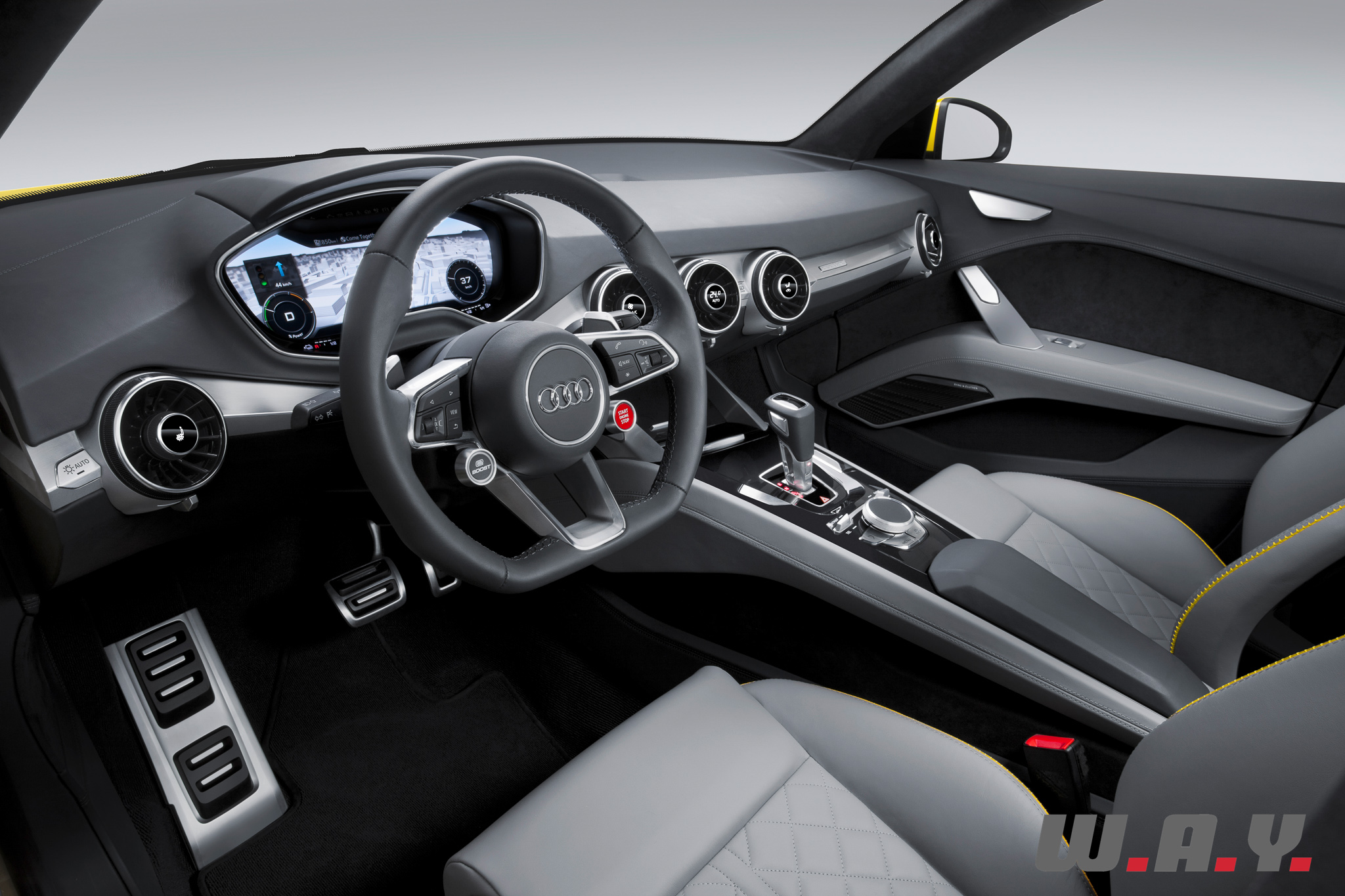 Enfin, ce concept inaugure également la technologie “Audi Wireless Charging”, qui permet de recharger les batteries de l’auto par induction à la place de la traditionnelle prise en stationnement. Selon le constructeur, l’efficacité de ce système est similaire au câble, le temps de chargement étant identique. Un gros avantage pour les automobilistes ne disposant pas de place de parking intérieure. En effet, la charge par induction n’est pas tributaire des conditions météo (pluie, neige, gel) comme une prise et ses câbles.
