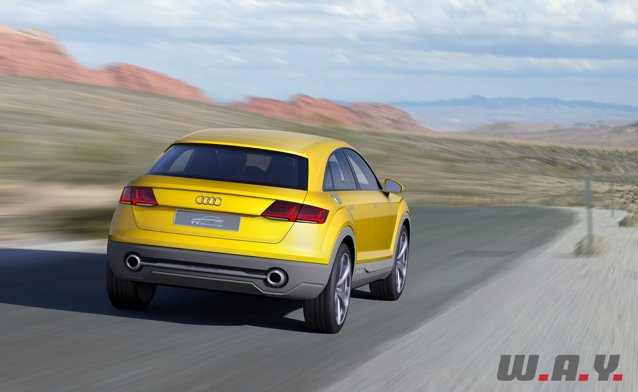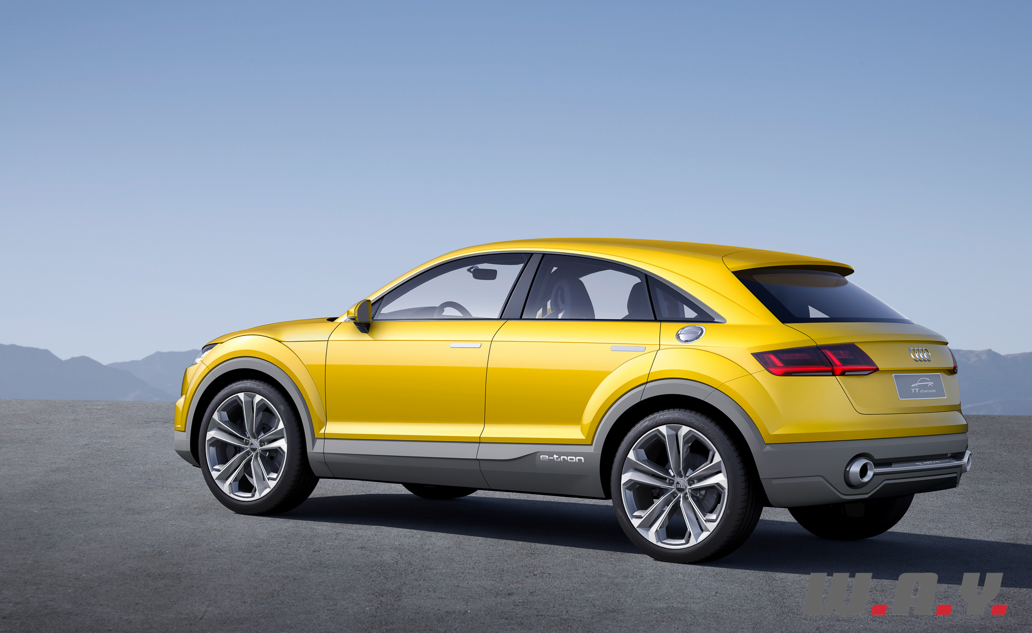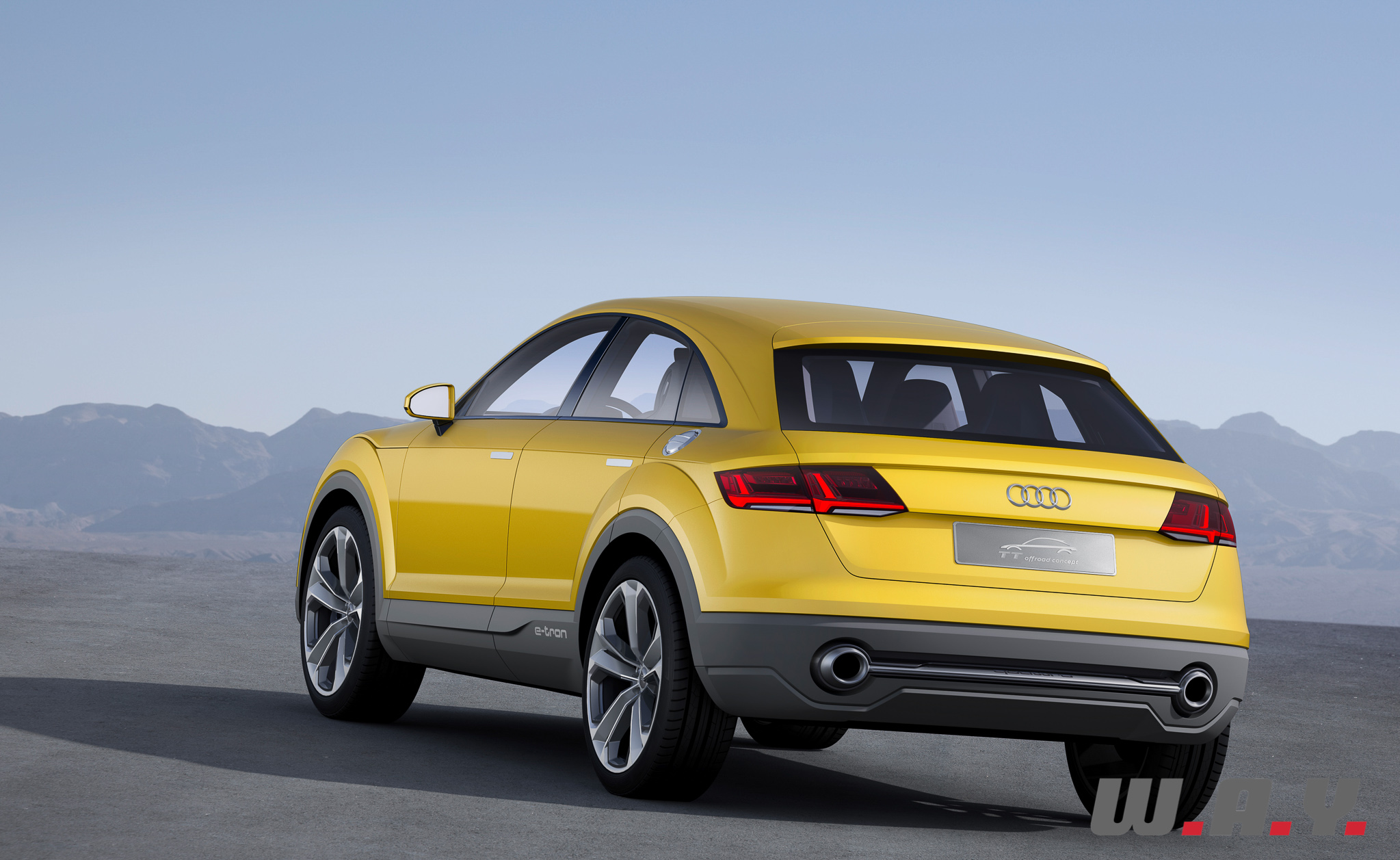 L’Audi TT Offroad Concept est basé sur une plateforme hybride plug-in quattro, développant 408 CV et 650 Nm. Le 0-100 km/h est donné en 5.2 secondes et la vitesse maxi est bridée à 250 km/h. Malgré cette puissance de feu, la consommation moyenne est annoncée à 1.9 l./100 km et les émissions de CO2 à 45 g/km. L’auto peut également fonctionner en mode tout électrique sur 50 km avec une vitesse maxi de 130 km/h. L’autonomie totale est annoncée aux alentours de 880 km.