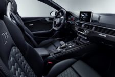 Passé d’une configuration trois à cinq-portes signifie assez logiquement que les ingénieurs d’Audi Sport ont dû ajouter des centimètres au châssis. C’est ainsi l’empattement qui est revu à la hausse, pour des porte-à-faux conservés courts. Le design reste dans le pure style de la maison, avec des arêtes saillantes de toutes parts, une face avant plus que volontaires, construite autour de la calandre « Singleframe » au motif nids d’abeille distinctif de la marque. A l’arrière, on peut noter les éléments spéciaux comme le diffuseur badgé RS ou les embouts ovales d’échappement. Autre fait à souligné, des jantes 19 pouces seront équipées de série, avec la possibilité d’opter pour des 20 pouces.