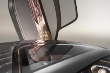 5m80 de long et 2m40 de large, elle en impose cette EXP 100 GT, une véritable ode au luxe automobile d’antan qui confirme le savoir faire Bentley. Les deux seules portes, une de chaque côté, font deux mètres de large et s’ouvrent en pivotant vers le haut pour facilité l’accès. Totalement ouvertes, elle atteignent près de trois mètres de haut. Eclairages et matériaux, tout est fait pour proposer un véhicule hors du commun.