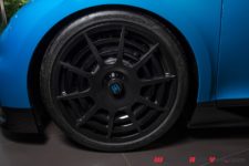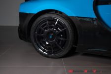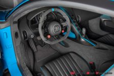 A titre d’exemple, en 6ème, cette Chiron Pur Sport passe de 60 à 120 km/h en deux secondes de moins qu’une Chiron “normale” déjà très performante. C’est absolument remarquable pour être signalé. La vitesse quant à elle est limitée électroniquement à 350 km/h contre 420 km/h pour la Chiron de base. Les suspensions sont 65% plus rigides à l’avant et 33% à l’arrière pour permettre à la Chiron Pur Sport de rester collée au bitume. Les jantes, déjà très légères, ont elles aussi subi une cure d’amaigrissement de 16 kg au total. Elles sont associées avec de nouveaux pneus Michelin Pilot Sport Cup 2R pour une meilleure adhérence.