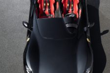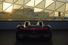 Abusant de la fibre de carbone pour leur fabrication, ces deux engins promettent un excellent rapport poids/puissance. Pour les animer, on retrouve sous le capot un V12 6.5, mais pas n’importe lequel, le plus puissant jamais construit à Maranello. Ce dernier développe 810 ch à 8’500 t/min pour un couple de 719 Nm à 7’000 t/min. Ainsi, le 0-100 km/h est abattu en seulement 2.9 secondes, alors que les 200 km/h sont atteints en 7.9 secondes. L’architecture des voitures, mais surtout l’absence de pare-brise et de toit, offriront des sensations de vitesse uniques.