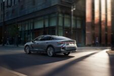 Reposant sur une plateforme GA-K repensée pour accueillir des motorisations électrifiées, la nouvelle ES mise sur des proportions optimisées, avec un empattement et une silhouette travaillés selon le nombre d’or. Le design extérieur se distingue par une carrosserie fuselée typique de Lexus, une face avant basse et large et une double signature lumineuse en L. Le profil associe surfaces sculptées, hanches marquées et ligne de toit effilée vers un arrière plongeant, souligné par une barre lumineuse continue intégrant le logo Lexus.