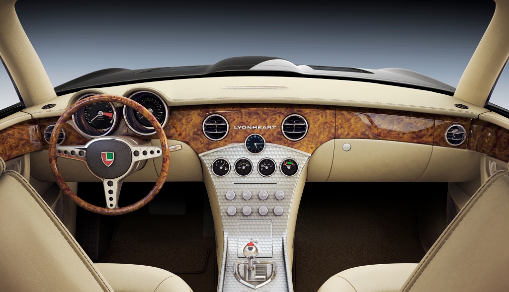 Au premier coup d’oeil on dirait une Jaguar E-Type et il semble évident que son créateur, Robert Palm, s’est inspiré de la mythique Anglaise, de surcroit cinquantenaire en 2012, pour imaginer la Lyonheart K. Malgré que M. Palm soit à la tête du bureau de design suisse Classic Factory, la Lyonheart K sera entièrement fabriquée en Angleterre et représentera ainsi la plus pure tradition des voitures de sport britanniques. Elle sera en construite par Envisage Manufacturing à Coventry, le hasard ou pas fait qu’il s’agit aussi la ville natale de Jaguar.