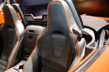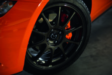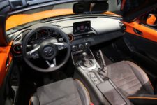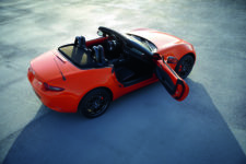 En attendant, revenons à cette MX-5 30th Anniversary Edition qui pour l’occasion s’habille d’une robe “Racing Orange”. Teinte exclusive et unique pour un modèle qui le sera aussi puisqu’il sera produit à seulement 3’000 exemplaires à travers le monde, Roadster et RF cumulées, transmission manuelle ou automatique. L’équipement se veut aussi spécifique avec notamment des jantes en aluminium forgé (Rays ZE40 RS30) développées en collaboration avec Rays Co., Ltd. Il y aura aussi des badges “30th Anniversary” avec le numéro de série de la voiture, des sièges Recaro, des suspensions Bilstein (uniquement avec la boite manuelle), etc… ainsi que différents rappels de couleur orange comme par exemple sur les pinces de freins, les garnitures de portes, les surpiques des sièges, etc.