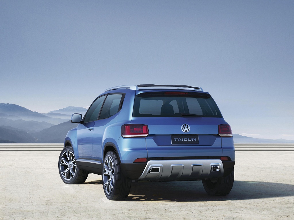 A l’occasion de l’International Motor Show 2012 de Sao Paulo, Volkswagen exposera donc en première mondiale son interpretation du SUV ultra-compact, le Taigun, dont les dimensions sont relativement contenues. En effet, par rapport à son grand frère le Tiguan, le VW Taigun mesure 3,859 m de long, soit presque 57 cm de moins, 1,728 m de large, quasiment 10 cm de moins et 1,570 m de haut, plus de 11 cm en moins. Malgré cela, son empattement de 2,470 m est lui très généreux (2,604 m pour le Tiguan) offrant ainsi un habitacle très spacieux. Le volume du coffre est de 280 litres, sous le hayon arrière, pouvant atteindre 987 litres en rabattant les sièges arrière.