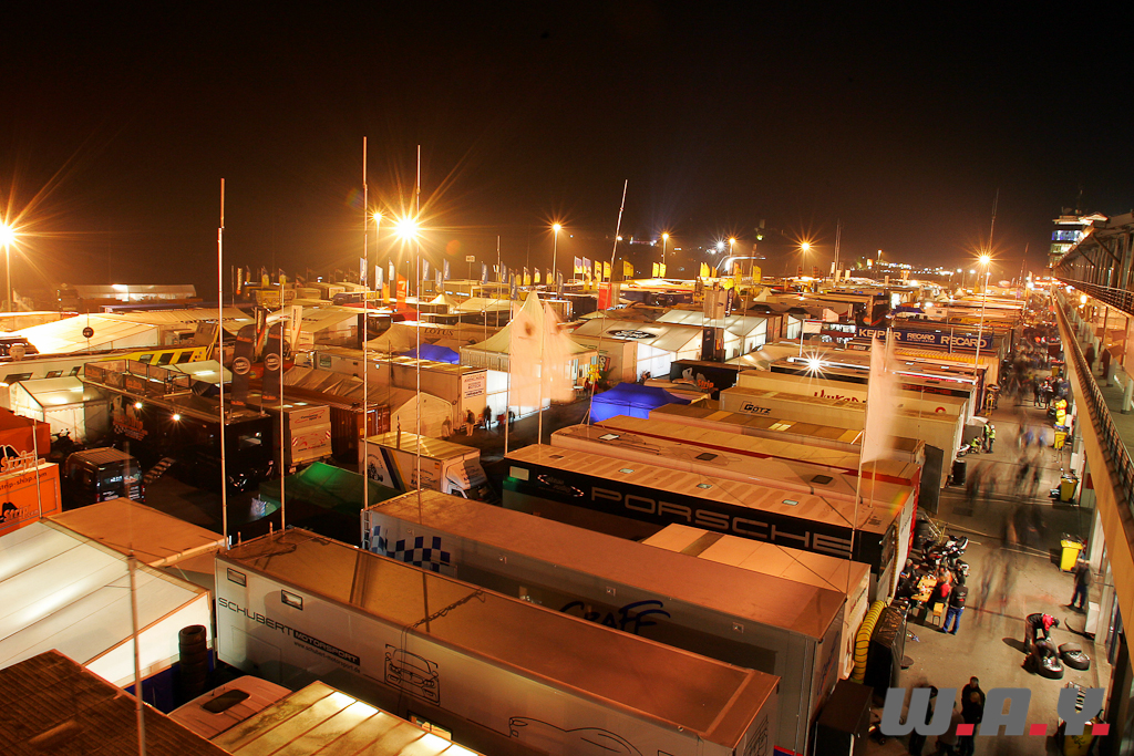 Grâce à l’opportunité offerte par Porsche, j’ai décidé de vivre mes premières 24h du Nürburgring au cœur de l’action. J’ai donc délaissé les salons confortables des lounges des constructeurs et le calme feutré de la salle de presse pour allez m’enivrer du spectacle, du vacarme et des odeurs du paddock.