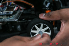 Les élèves reçoivent des dizaines de pièces, des roues, des suspensions, des capteurs, des moteurs et autres systèmes radio. Les deux équipes passent la journée à assembler ces voitures et à faire des essais pour finalement, en fin de journée, se présenter avec leur véhicule pour la course.